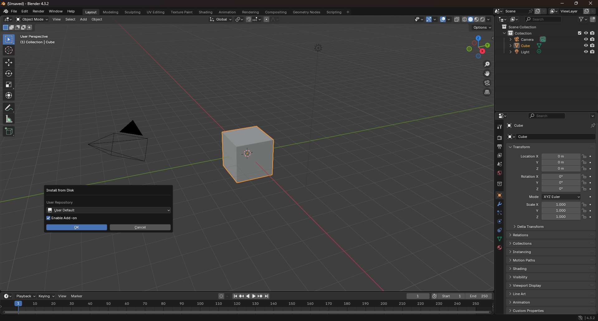 • Install the downloaded addon using Edit->Preferences->Install and choose the downloaded ZIP file.